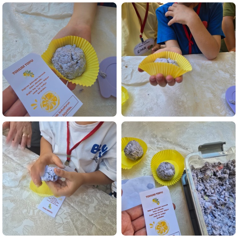 Doğayı korumanın ve yeşil alanları çoğaltmanın önemini çocuklarımıza küçük yaşta kazandırmak amacıyla düzenlediğimiz bu etkinlikte, öğrencilerimizle birlikte toprak, kil ve çeşitli bitki tohumlarını bir araya getirerek kendi tohum toplarımızı hazırladık.